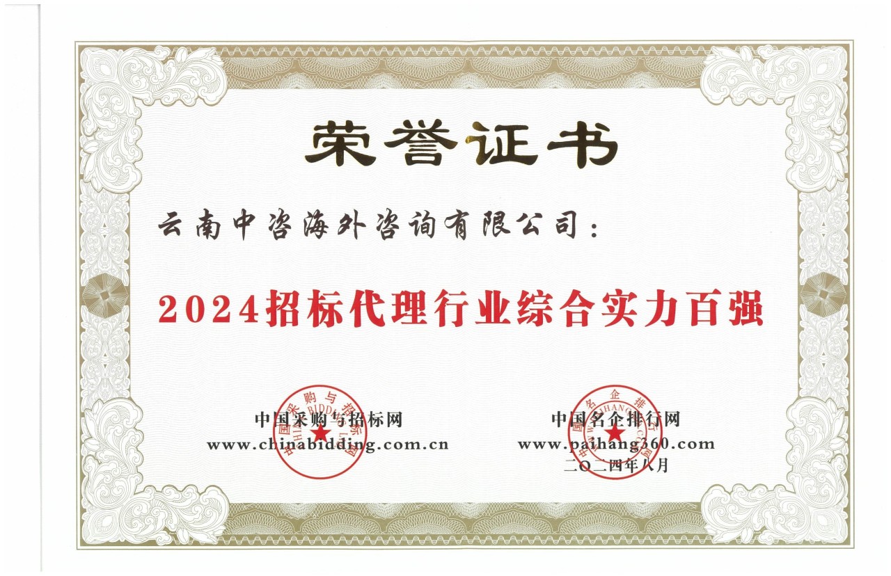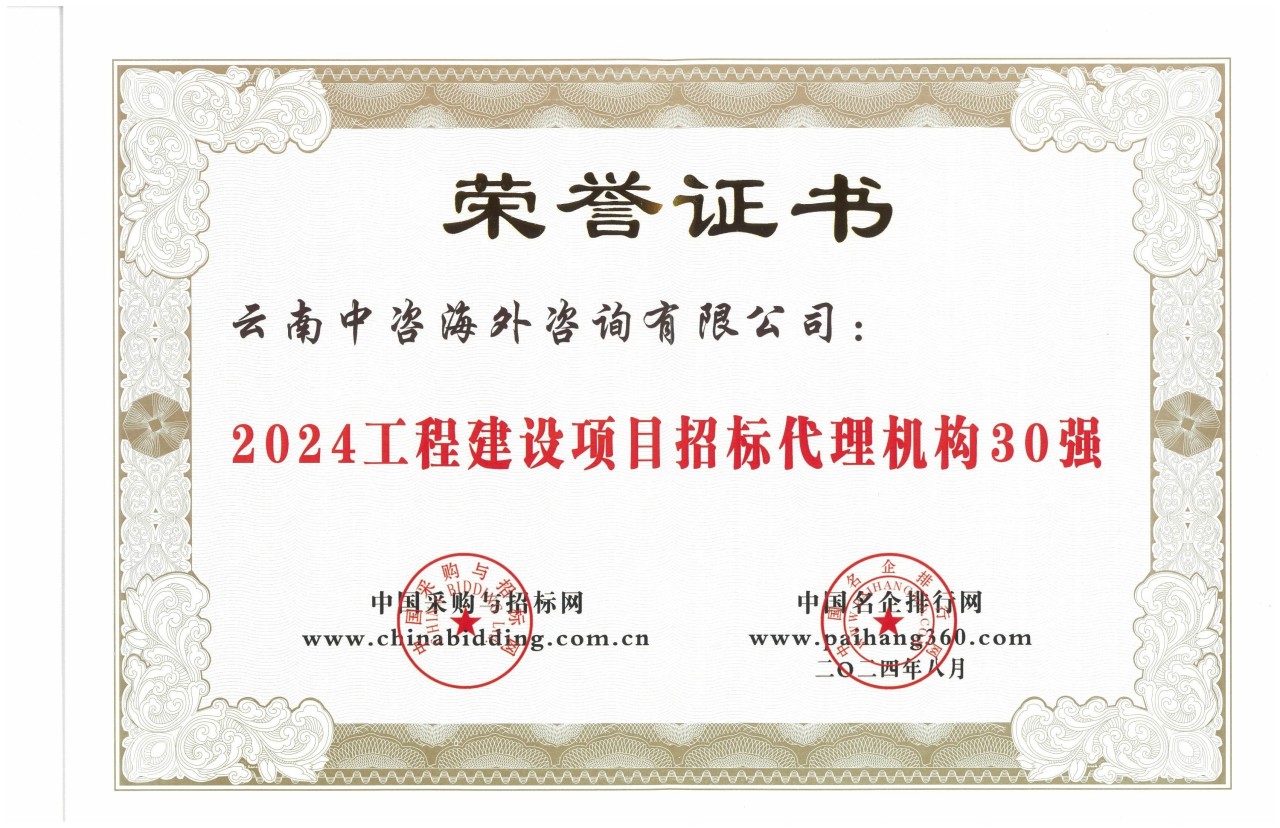 云南中咨海外咨詢有限公司在《招標(biāo)投標(biāo)法》頒布施行25周年系列活動(dòng)暨2024(第18屆)招投標(biāo)領(lǐng)域年度聚焦招標(biāo)代理業(yè)務(wù)梳理優(yōu)化活動(dòng)中,榮獲“2024招標(biāo)代理行業(yè)綜合實(shí)力百強(qiáng)”、“2024政府采購項(xiàng)目招標(biāo)代理機(jī)構(gòu)30強(qiáng)”、“2024工程建設(shè)項(xiàng)目招標(biāo)代理機(jī)構(gòu)30強(qiáng)”榮譽(yù)獎(jiǎng)項(xiàng)。同時(shí)公司員工3人榮獲優(yōu)秀咨詢工程師、12人榮獲優(yōu)秀招標(biāo)師。本次活動(dòng)由中國采購與招標(biāo)網(wǎng)、中國名企排行網(wǎng)共同籌備組織。