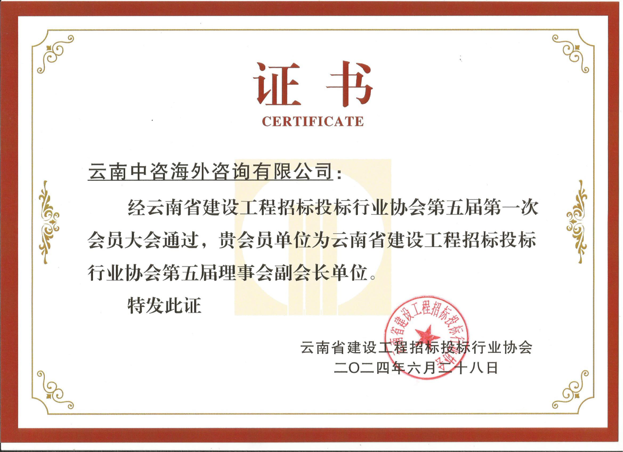 云南中咨海外咨詢有限公司成立于 2002 年,是云南省第一批成立的專業(yè)咨詢服務(wù)機(jī)構(gòu),也是本土招標(biāo)代理行業(yè)率先獲得“科技型中小企業(yè)”稱號(hào)的公司。先后獲得了住建部頒發(fā)的《工程招標(biāo)代理機(jī)構(gòu)甲級(jí)資質(zhì)證書》、財(cái)政部頒發(fā)的《中華人民共和國政府采購代理機(jī)構(gòu)甲級(jí)資格證書》、發(fā)改委頒發(fā)的《中華人民共和國中央投資項(xiàng)目招標(biāo)代理機(jī)構(gòu)乙級(jí)資格證書》、商務(wù)部頒發(fā)的《機(jī)電產(chǎn)品國際招標(biāo)代理機(jī)構(gòu)》資格。在工程造價(jià)領(lǐng)域,獲得了住建部頒發(fā)的《工程造價(jià)咨詢企業(yè)甲級(jí)資質(zhì)證書》。公司是“中國招標(biāo)投標(biāo)協(xié)會(huì)”會(huì)員單位、“云南省建設(shè)工程招標(biāo)投標(biāo)行業(yè)協(xié)會(huì)”副會(huì)長單位、“云南省招標(biāo)投標(biāo)協(xié)會(huì)”副會(huì)長單位、“云南省水利工程行業(yè)協(xié)會(huì)”會(huì)員單位、“云南省建設(shè)工程造價(jià)協(xié)會(huì)”會(huì)員單位。