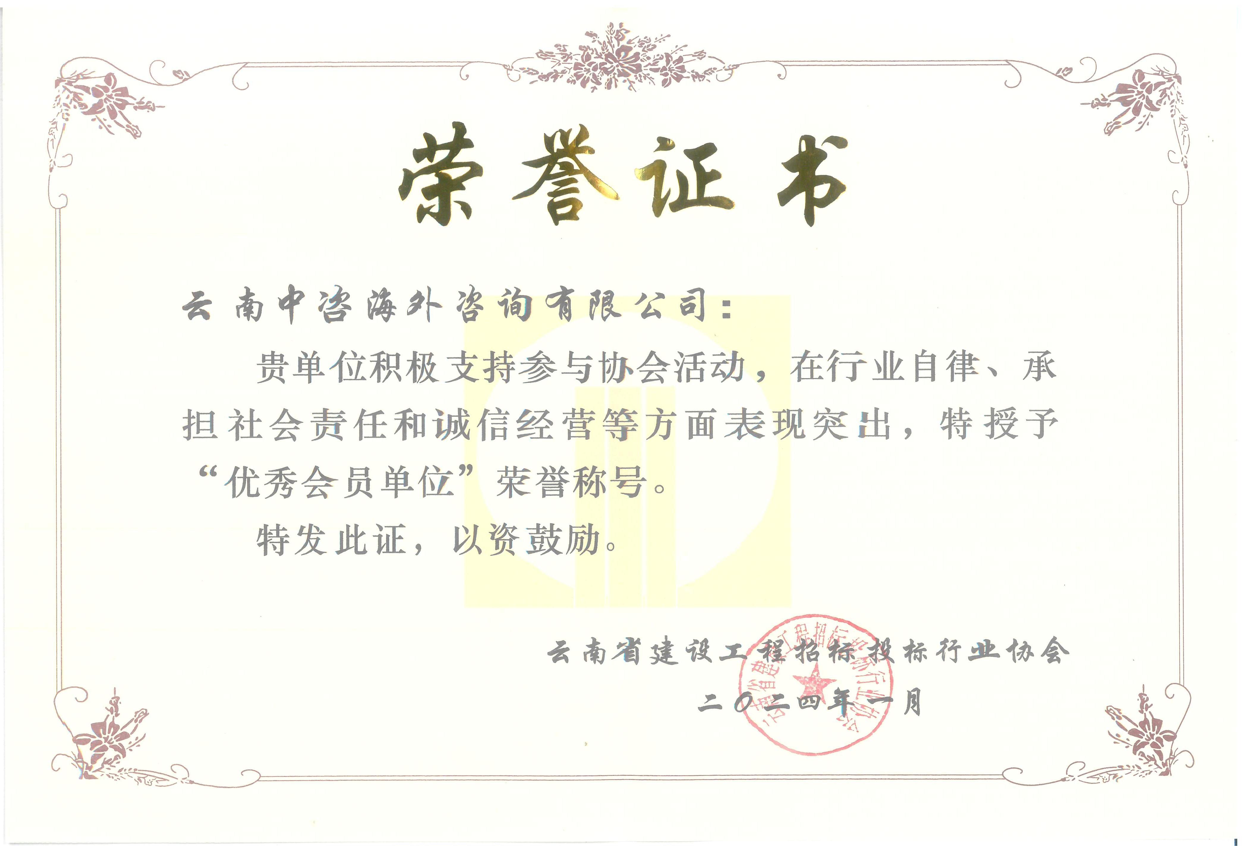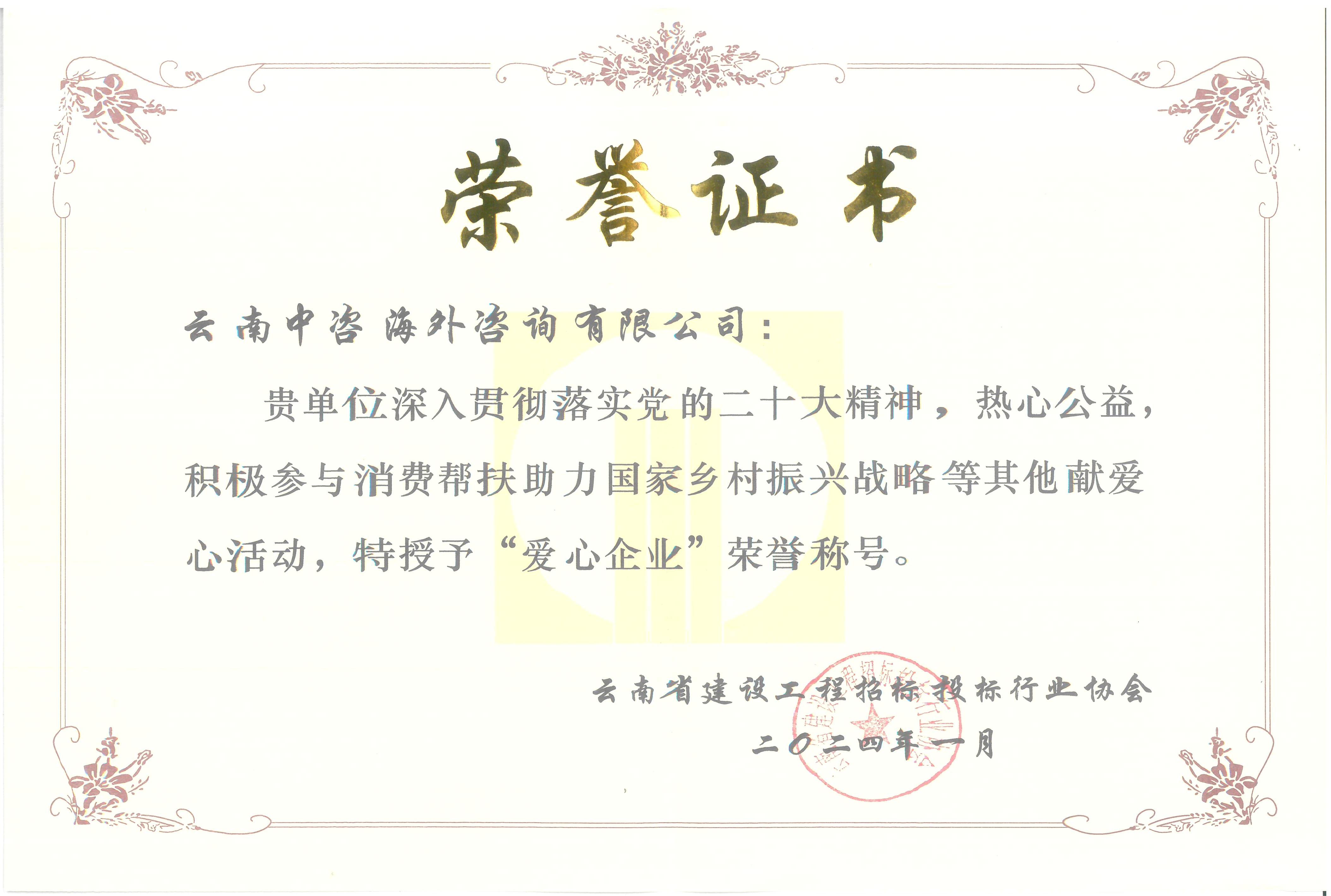 云南省建設(shè)工程招標(biāo)投標(biāo)行業(yè)協(xié)會(huì)第五屆第一次會(huì)員大會(huì)在昆明圓滿落幕,我公司再次被推選為云南省建設(shè)工程招標(biāo)投標(biāo)行業(yè)協(xié)會(huì)副會(huì)長單位,公司副董事長廖勁松當(dāng)選第五屆理事會(huì)副會(huì)長,并榮獲協(xié)會(huì)頒發(fā)的“2023年度愛心企業(yè)”、“2023年度優(yōu)秀會(huì)員單位”獎(jiǎng)狀。