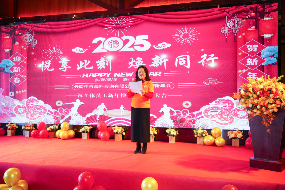 年會(huì)開(kāi)始,亢麗毓董事長(zhǎng)代表公司董事會(huì)向所有來(lái)賓和全體云南中咨海外的同仁及家人,表示最衷心的感謝和最誠(chéng)摯的新年祝福。亢麗毓董事長(zhǎng)帶領(lǐng)大家回顧2024年過(guò)往,這一年,我們從低谷中奮進(jìn),我們用堅(jiān)韌超越自我,用汗水鑄就成功,用優(yōu)質(zhì)的服務(wù)贏得了客戶的信賴(lài)和好評(píng)。