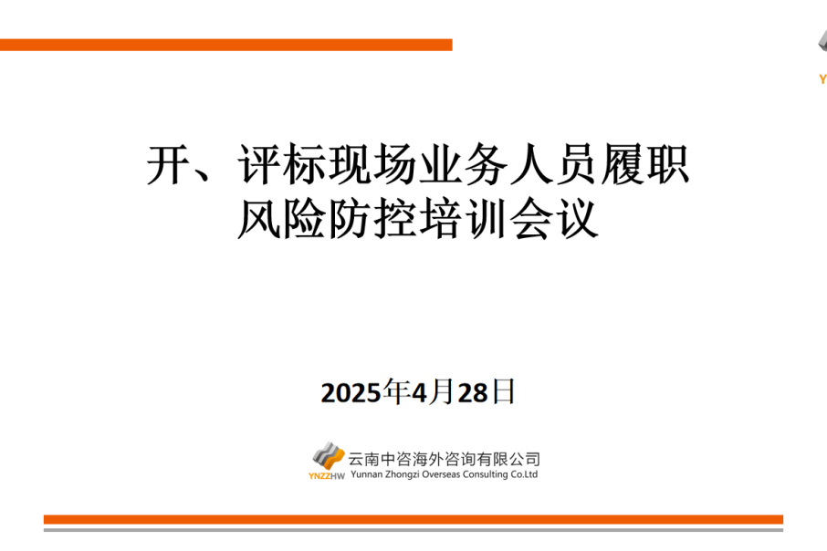 2025年4月28日,我公司組織了題為“開(kāi)、評(píng)標(biāo)現(xiàn)場(chǎng)業(yè)務(wù)人員履職風(fēng)險(xiǎn)防控培訓(xùn)會(huì)議”的內(nèi)部培訓(xùn)會(huì)。