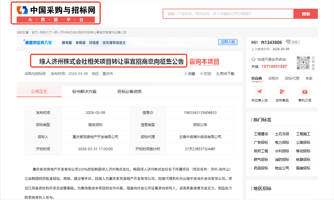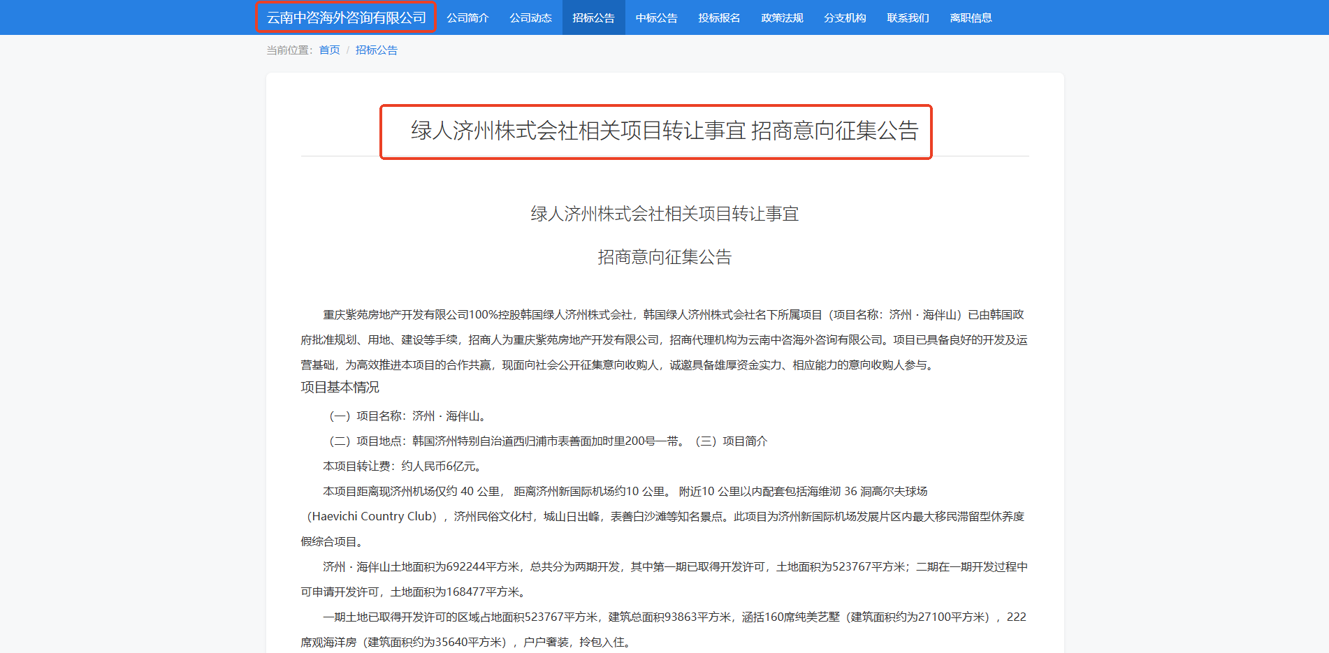 云南中咨海外代理招商的韓國(guó)“濟(jì)州·海伴山”項(xiàng)目具備良好的開(kāi)發(fā)及運(yùn)營(yíng)基礎(chǔ),現(xiàn)面向社會(huì)公開(kāi)征集意向收購(gòu)人,誠(chéng)邀您的參與,共謀發(fā)展。